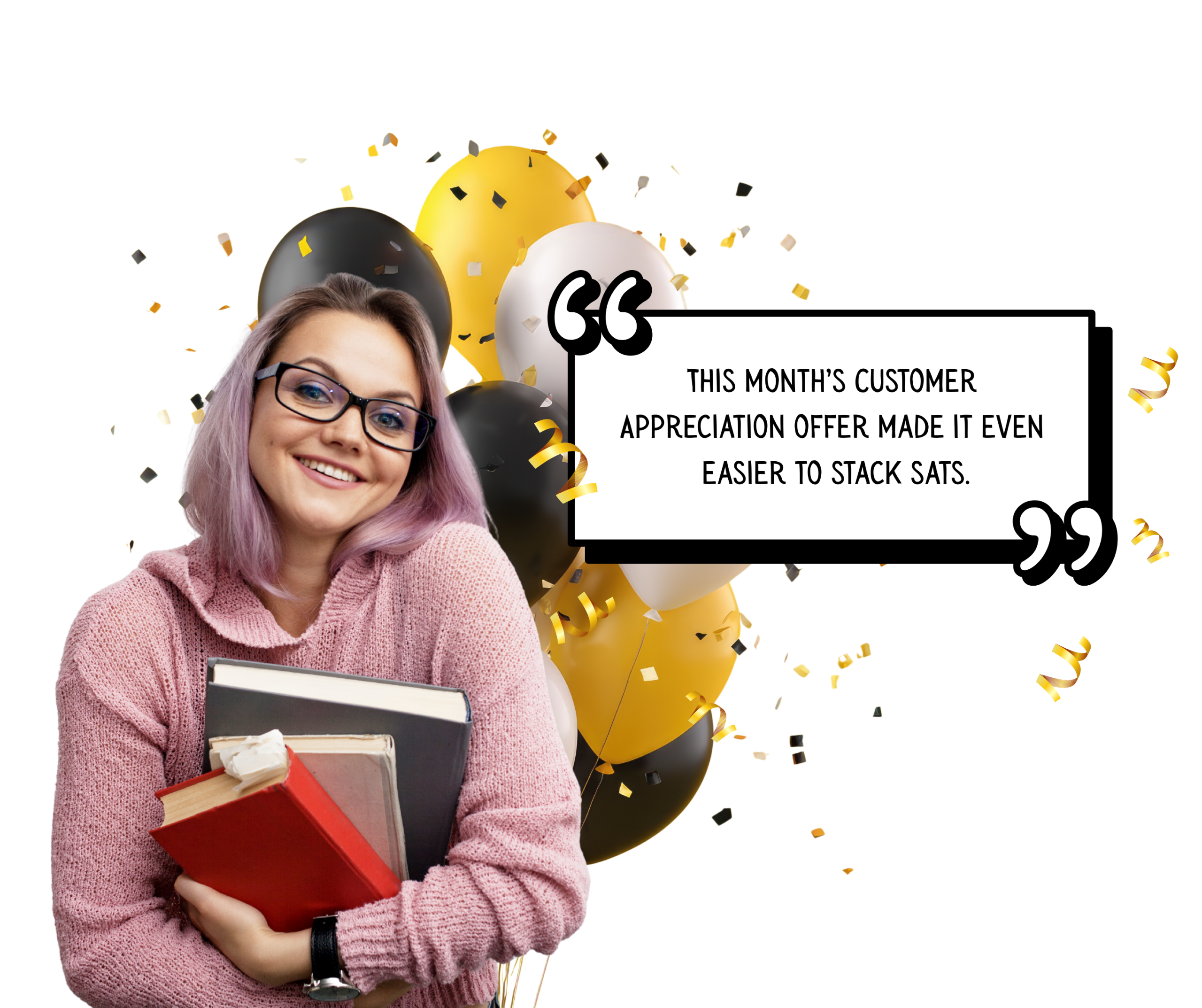 Celebrate Customer Appreciation Month with exclusive in-app offers and fast Bitcoin at thousands of ATMs.