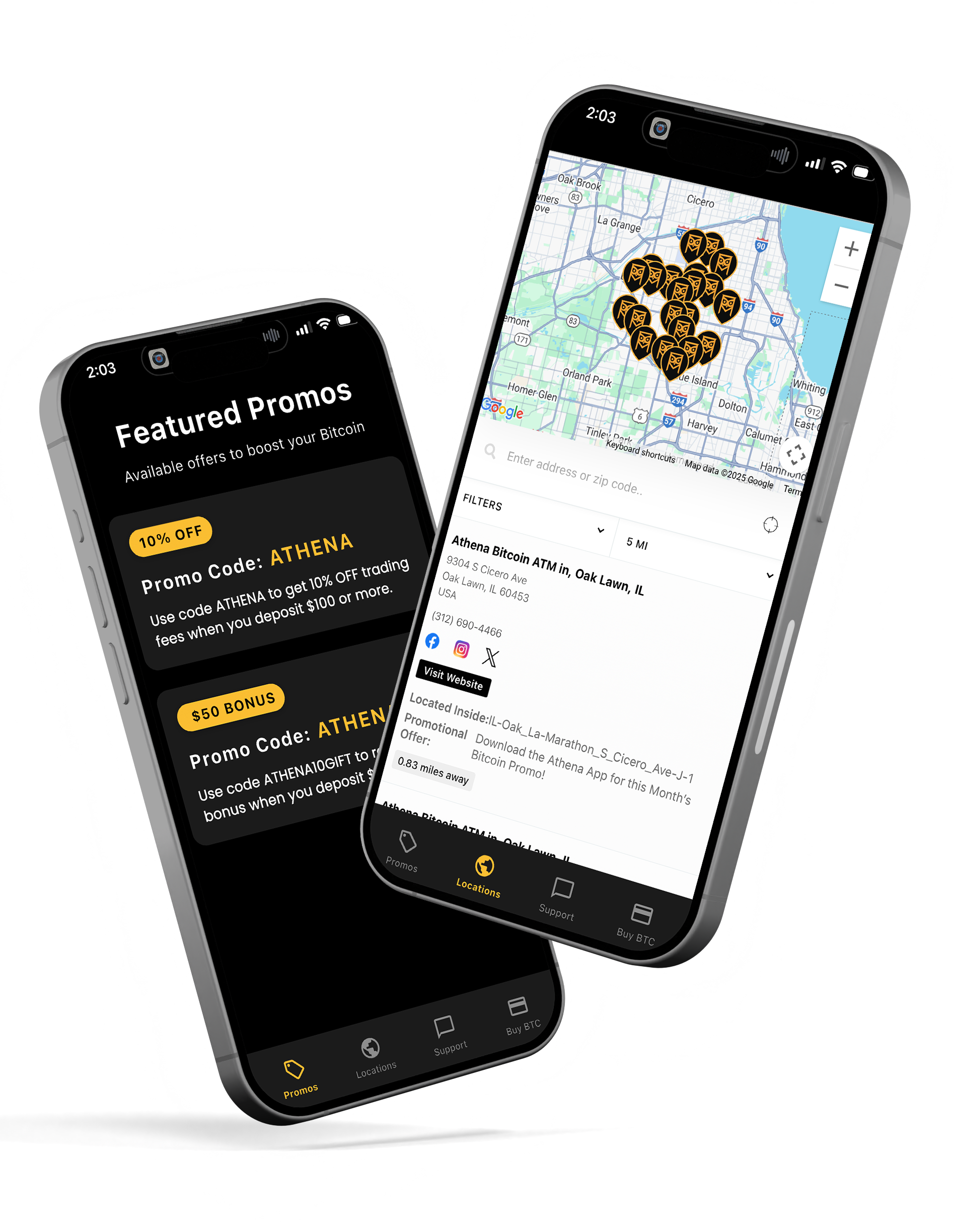 Celebrate our 10th anniversary with exclusive offers and discounts available only in the Athena App. Use the app to find nearby ATMs, buy Bitcoin in-app or online, unlock promos, and get fast, human support when you need it.